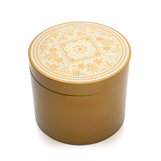 Available In StoreGold Floral Lacquerware Round Box With Lid 15cmD x 12cmH