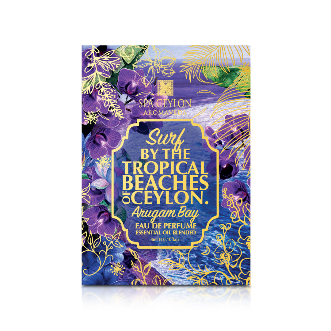 Surf by the tropical beaches of Arugam Bay with this exotic tropical fragrance, reminiscent of an island escape to the sun-kissed beaches of Ceylon. Infused with aromatic notes of Mandarin, Mango, Blue Lotus & Sugar Cane, combined with pure essential oil of uplifting Rose Geranium, to keep you fresh & fragrant all day long.