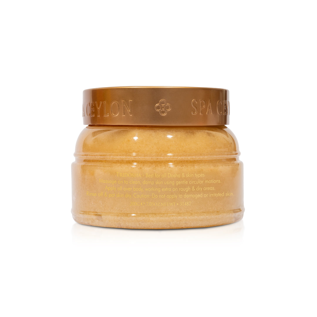 Natural Coconut Sugars combine with Ceylonese minerals & sea salts to help clear clogged pores, draw out toxins & exfoliate the body. Helps soften & smoothen skin, taking away the look of dry-dull skin, promoting more revitalised, even-toned skin & enhanced natural glow. -
