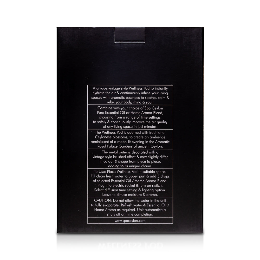 Detailed DescriptionA unique vintage style Wellness Pod to instantly hydrate the air & continuously infuse your living spaces with aromatic essences to soothe, calm & relax your body, mind & soul.