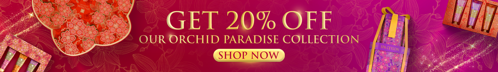 Our limited edition festive collections are adorned with Ceylonese Orchids, combined with signature Spa Ceylon floral motifs, interspersed with contemporary floral art & gilded forest leaves, to create a grand celebratory expression of Rainforest Beauty.