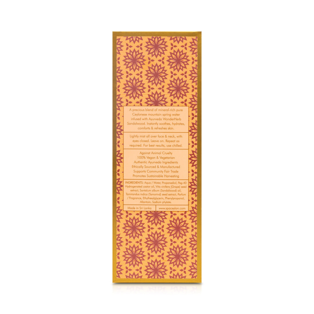 A precious blend of mineral-rich pure Ceylonese mountain spring water infused with Ayurveda WonderHerbs Sandalwood. Instantly soothes, hydrates, comforts & refreshes skin.