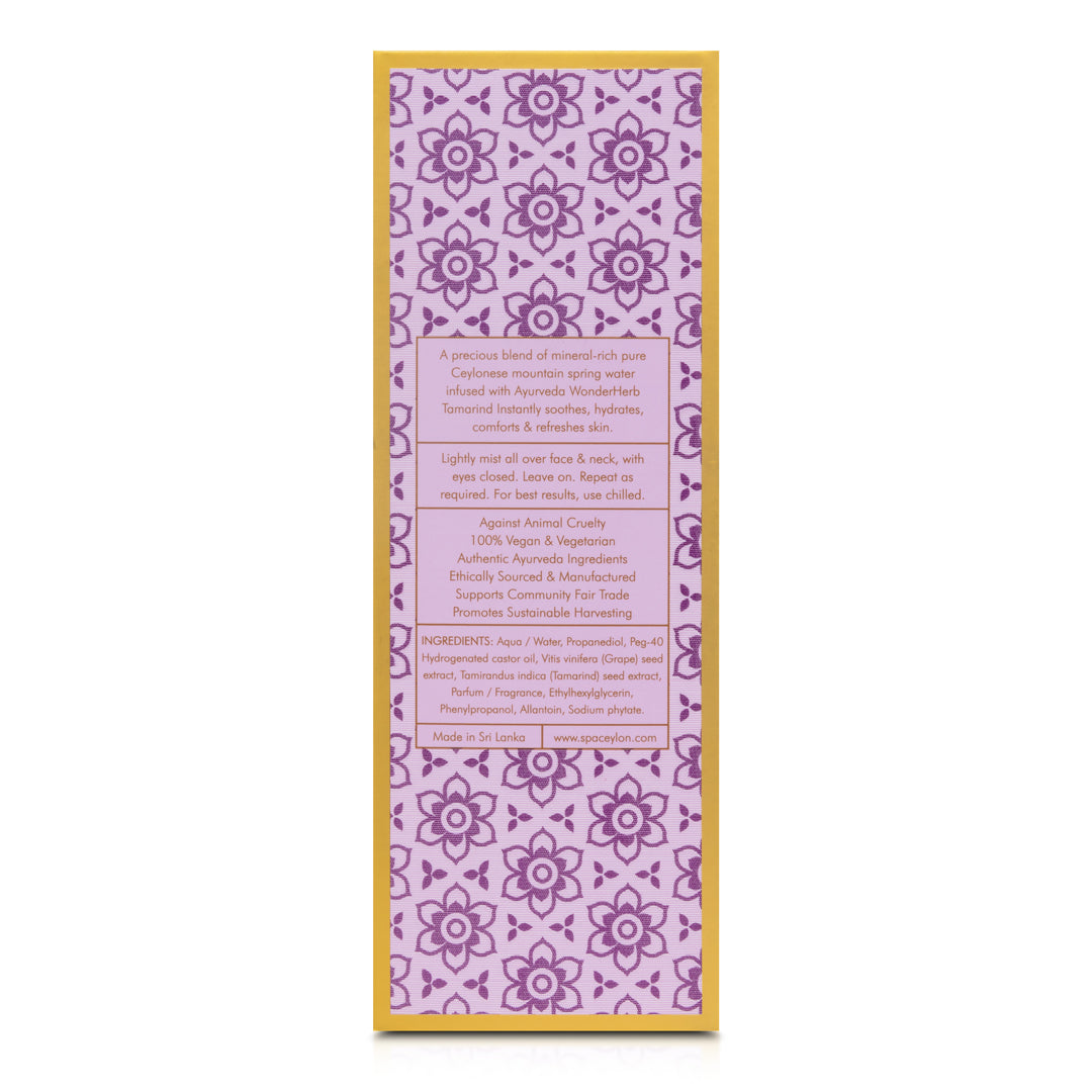 A precious blend of mineral-rich pure Ceylonese mountain spring water infused with Ayurveda WonderHerb Tamarind Instantly soothes, hydrates, comforts & refreshes skin.