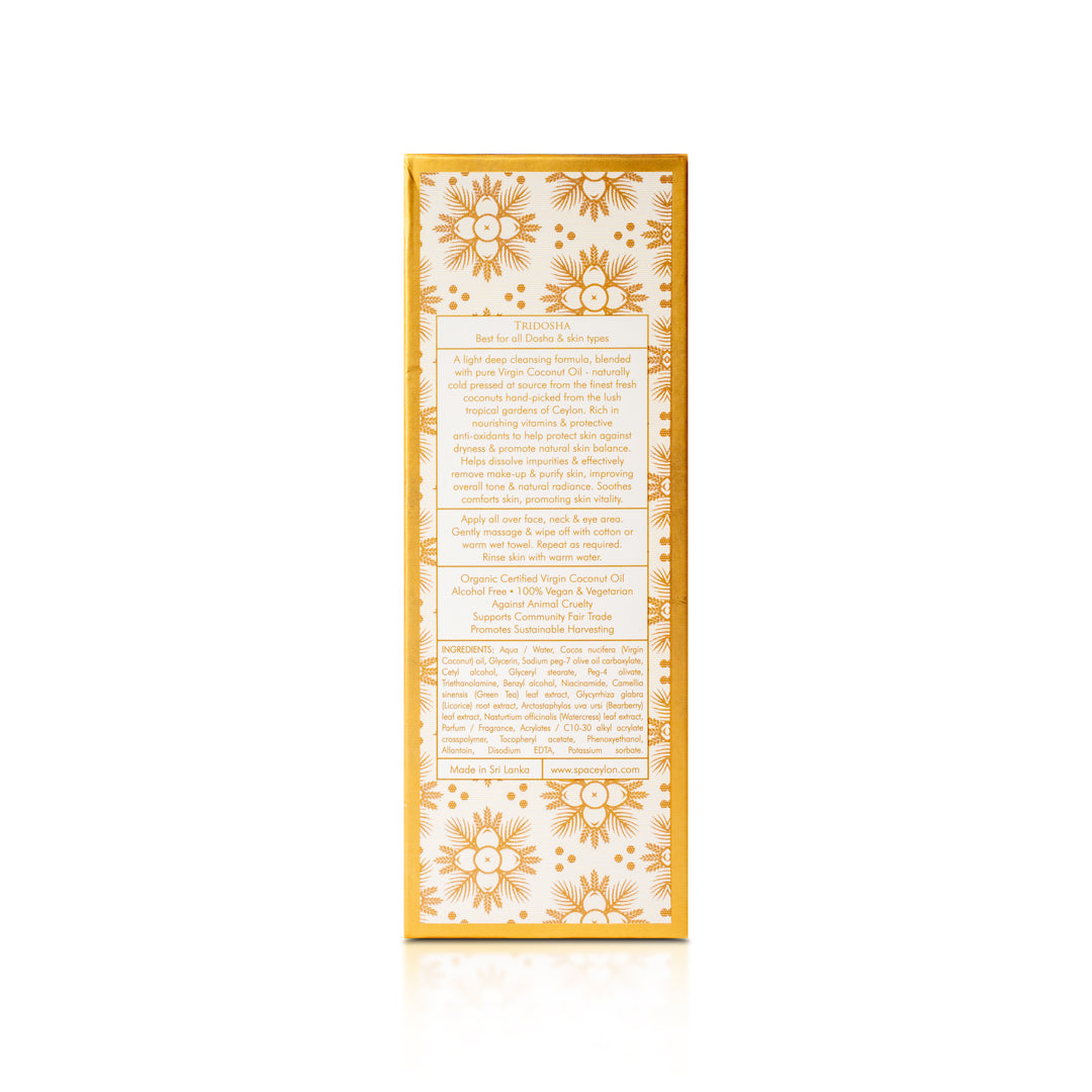 A light deep cleansing formula, blended with pure Virgin Coconut Oil - naturally cold pressed at source from the finest fresh coconuts hand-picked from the lush tropical gardens of Ceylon. Rich in nourishing vitamins & protective anti-oxidants to help protect skin against dryness & promote natural skin balance. Helps dissolve impurities & effectively remove make-up & purify skin, improving overall tone & natural radiance. Soothes comforts skin, promoting skin vitality.