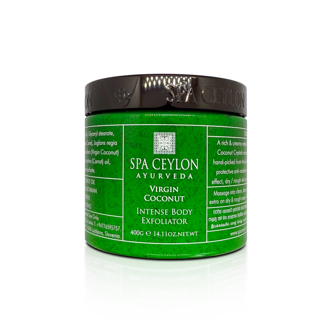 A rich & creamy natural exfoliating complex of pure Virgin Coconut Oil & Virgin Coconut Crystals naturally extracted and sourced from the finest fresh coconuts, hand-picked from the lush tropical gardens of Ceylon.
